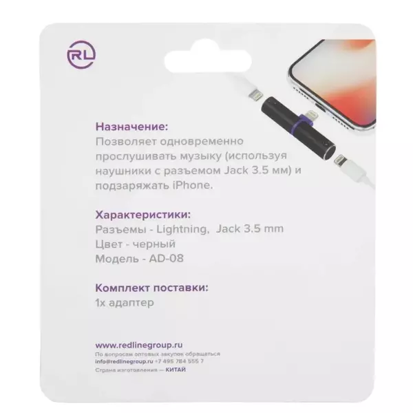 Описание Red Line lightning/Jack 3.5 (m) черный [УТ000016491]