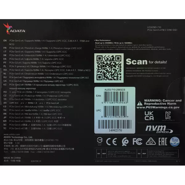 Особенности AData 256Gb Legend 710 [ALEG-710-256GCS]