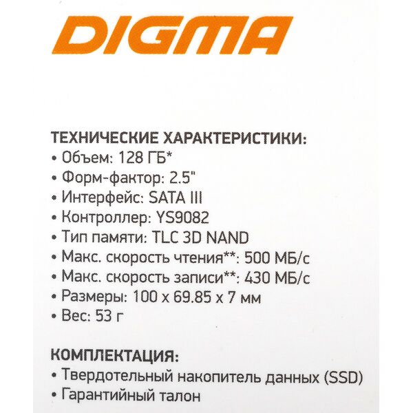 Описание Digma 128GB Run Y2 [DGSR2128GY23T]