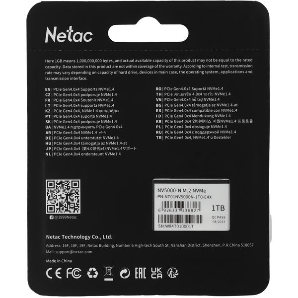 Наличие товара Netac 1Tb NV5000-N [NT01NV5000N-1T0-E4X]