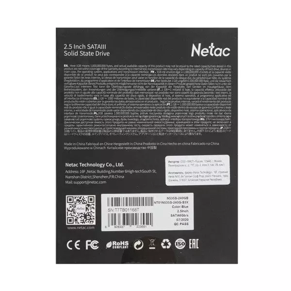 - Описание: Твердотельный накопитель Netac SSD N535S 2.5 SATAIII 240GB