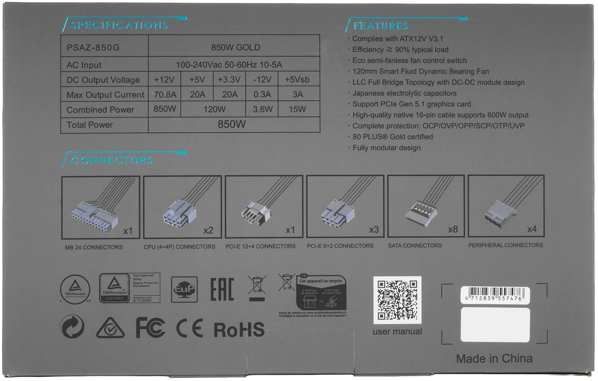 | Сертифицирован в стандарте | 80 PLUS GOLD |