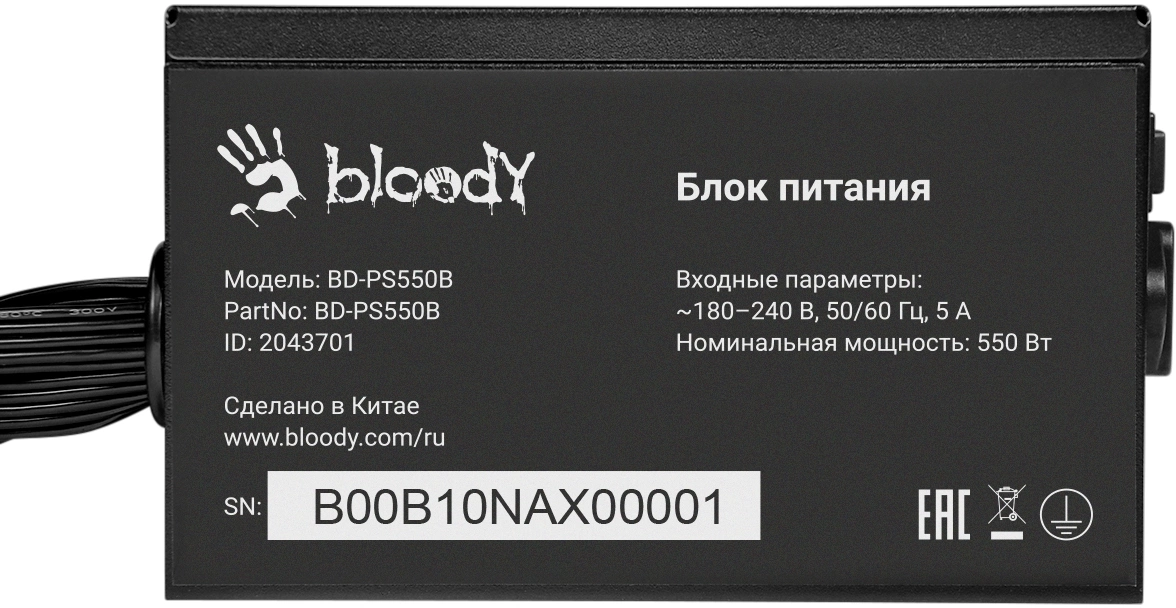 Блок питания Bloody BD-PS550B ATX 550W 80+ bronze (20+4pin) APFC 120mm fan 6xSATA RTL