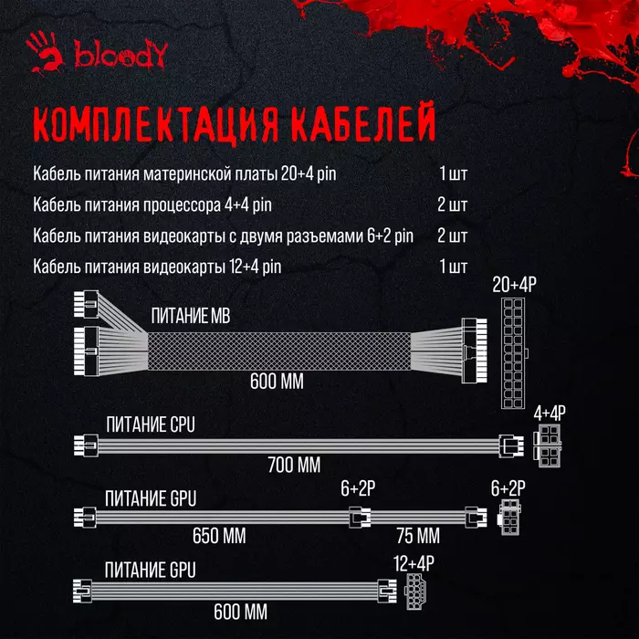 | Питание видеокарты | 4х(6+2) + 16 pin |