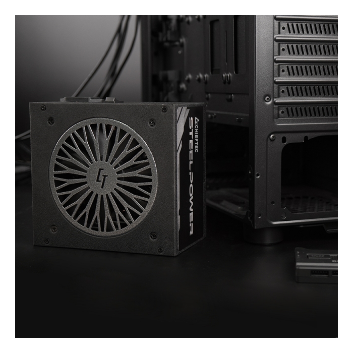 Серия SteelPower от Chieftec несет с собой множество престижных особенностей и компонентов из серии PowerPlay в популярный рынок гейминга. Геймеры могут насладиться жестким регулированием напряжения и низкой пульсацией благодаря полумостовым LLC-преобразователям с технологией DC-DC, а также премиальным японским конденсаторами в сочетании с эффективностью 80PLUS Bronze и полностью модульной системой организации кабелей.