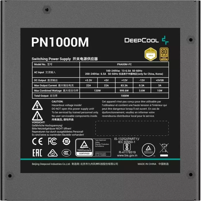 Блок питания Deepcool Game Storm PN1000M Gen.5 ATX 1000W 80+ gold (20+4pin) APFC 120mm fan 8xSATA RTL [R-PNA00M-FC0B-WGEU]
