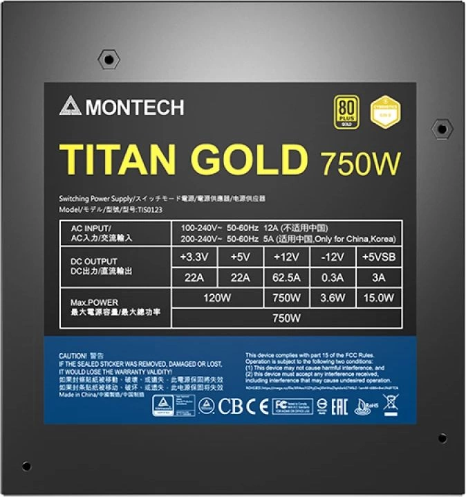 Описание Montech ATX 750W Titan Gold Gen.5 [TITAN GOLD 750 TIS0123]
