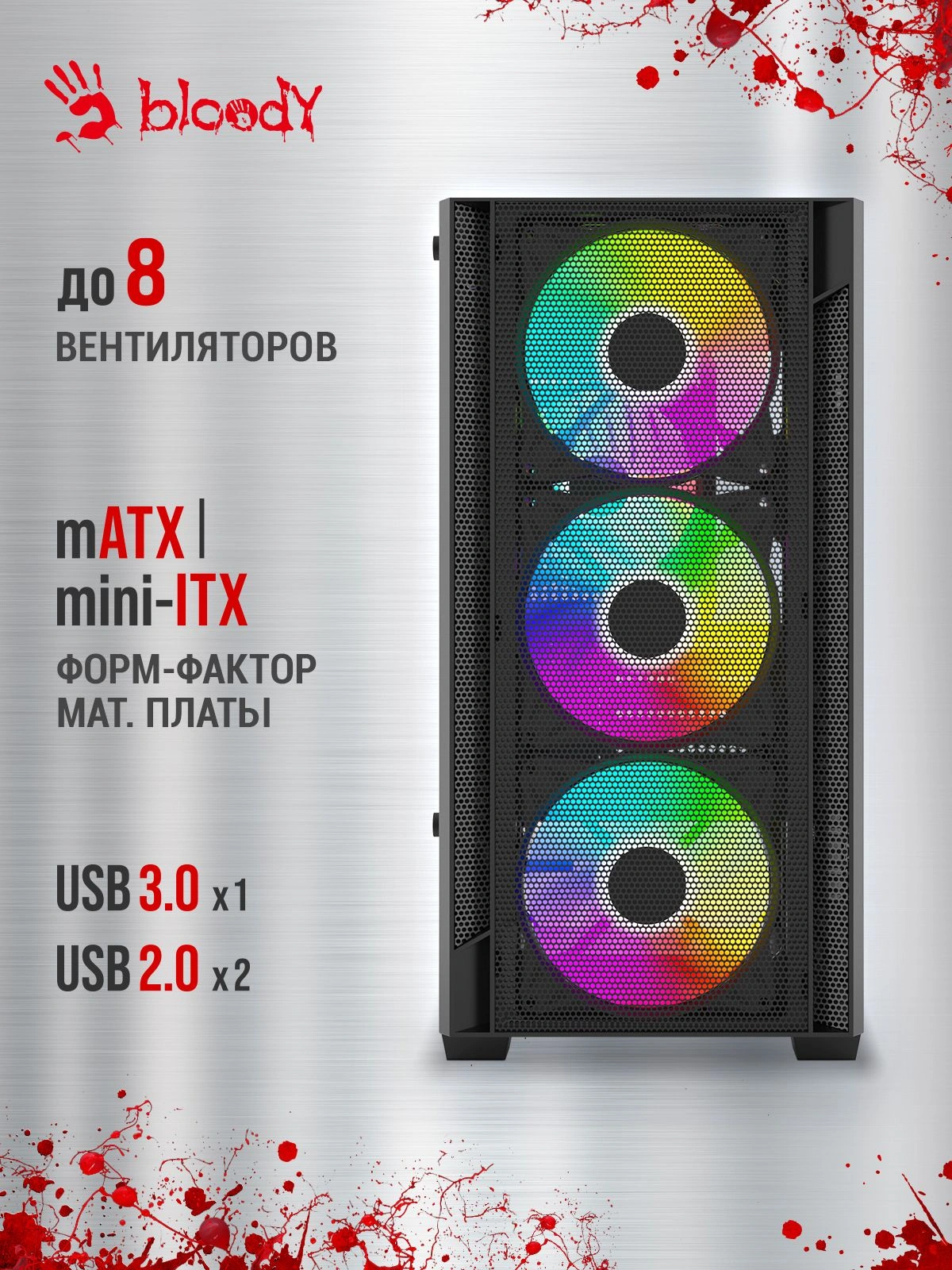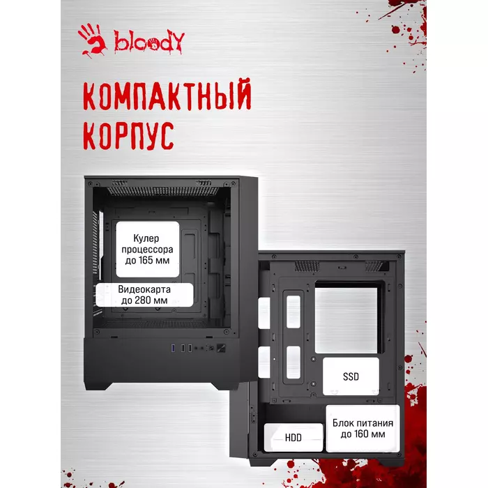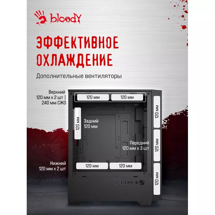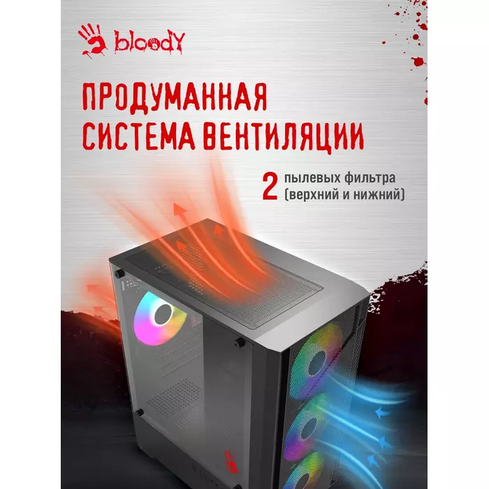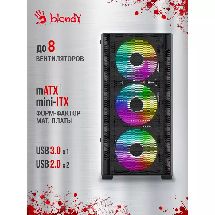 Корпус Bloody CC-124-BK черный без БП mATX 8x120mm 2xUSB2.0 1xUSB3.0 audio bott PSU