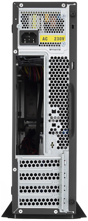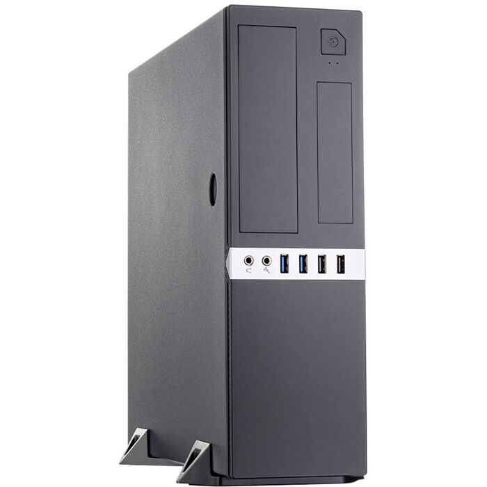Foxline FL-203 - корпус, позволяющий собрать компактный домашний или офисный компьютер. Корпус готов принять на борт материнскую плату стандарта Micro-ATX или Mini-ITX, низкопрофильные видеокарты длиной до 200 мм, процессорный кулер высотой до 90 мм, а также один 5.25-дюймовый оптический привод, один 3.5-дюймовый жесткий диск и один 2.5-дюймовый накопителей. На задней стенке расположены четыре слота расширения. Все необходимые разъемы и кнопки вынесены на переднюю панель корпуса.