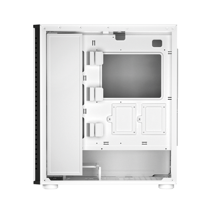Корпус выполнен из высококачественной SPCC стали и закаленного стекла, что гарантирует его долговечность и устойчивость к повреждениям. Белый цвет и прозрачная боковая панель придают системе элегантный и современный вид, который гармонично впишется в любой интерьер.