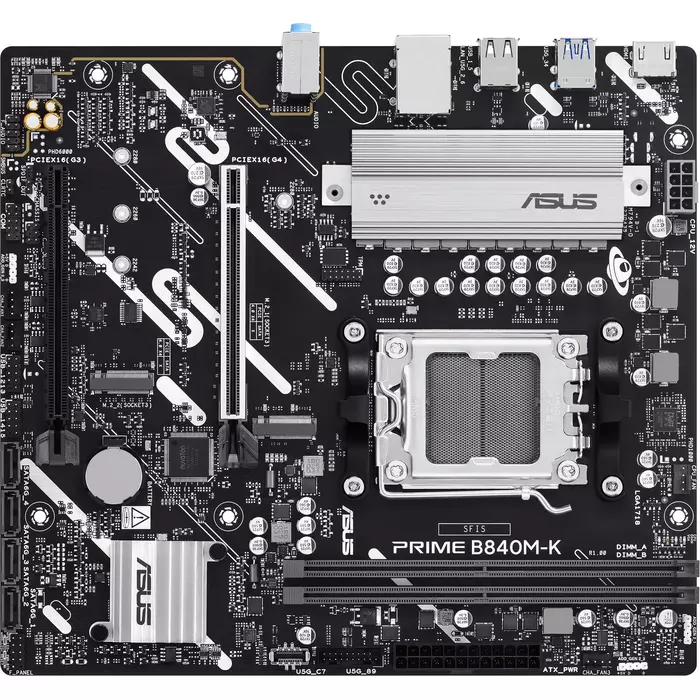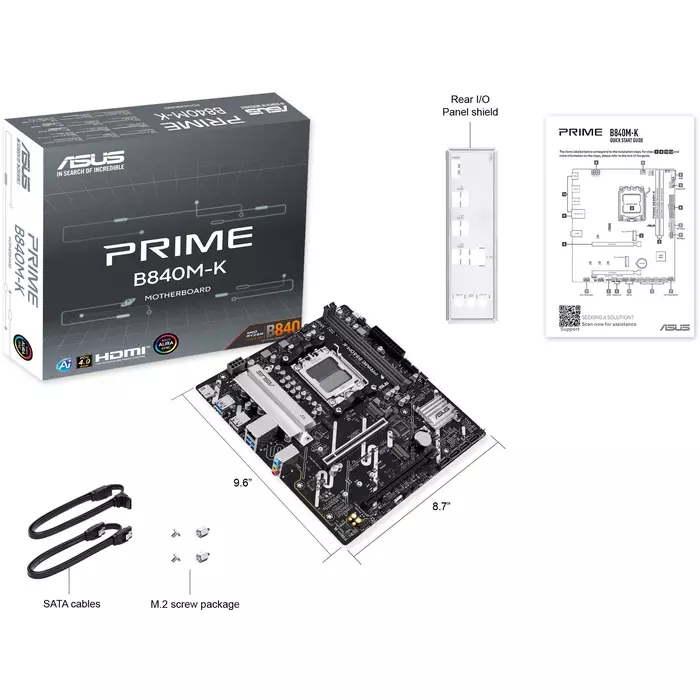 Материнская плата Asus PRIME B840M-K Socket AM5, AMD B840, 2xDDR5, mATX, AC`97 8ch(7.1), 2.5Gg, RAID, HDMI