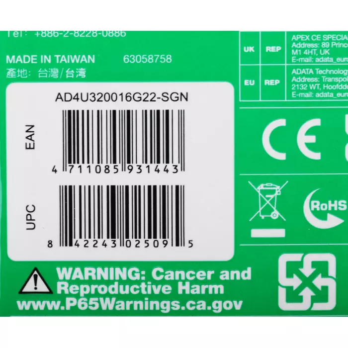 | PartNumber / Артикул Производителя | AD4U320016G22-SGN |