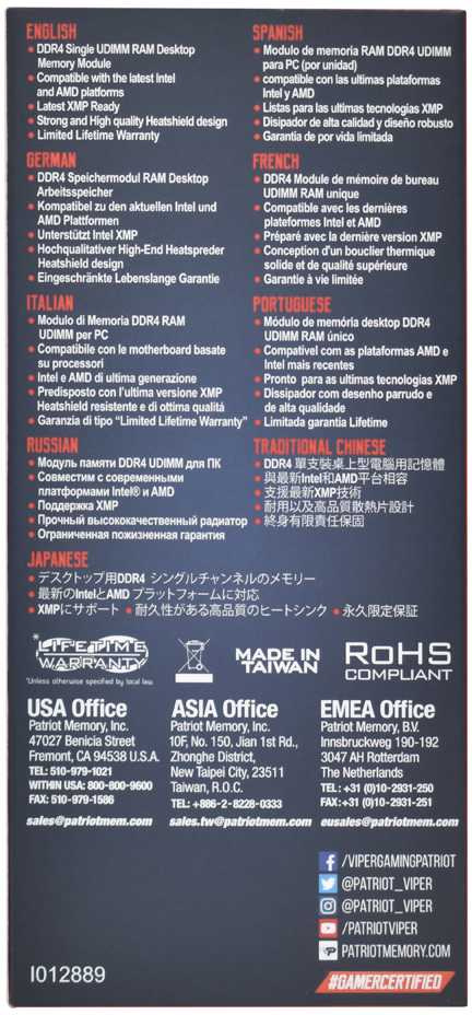 Особенности Patriot Viper Elite II Gaming 16Gb [PVE2416G320C8]
