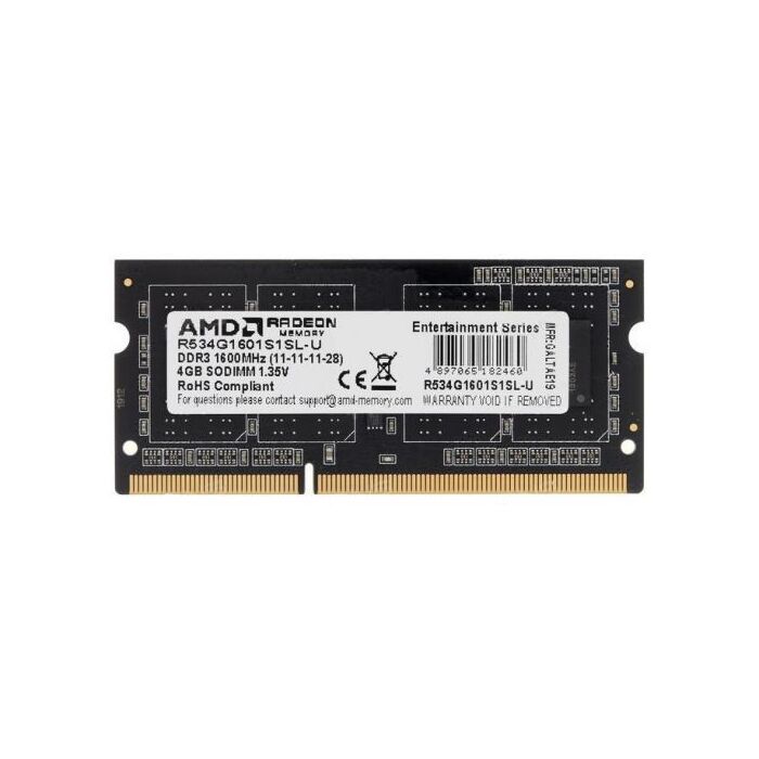 Память AMD 4Gb DDR3 1600MHz R5 PC3-12800 CL11 SO-DIMM 204-pin 1.35В RTL [R534G1601S1SL-U]