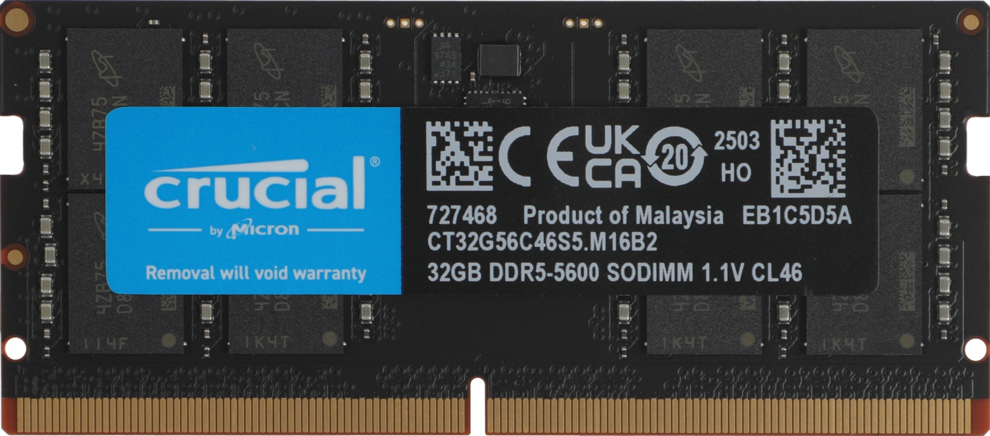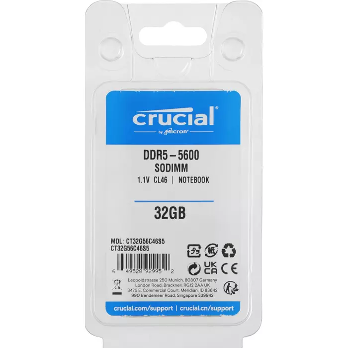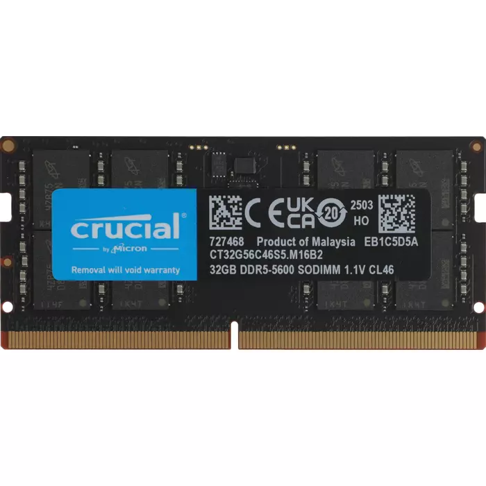 Память Crucial 32GB DDR5 5600MHz PC5-44800 CL46 SO-DIMM 262-pin 1.1В single rank RTL [CT32G56C46S5]