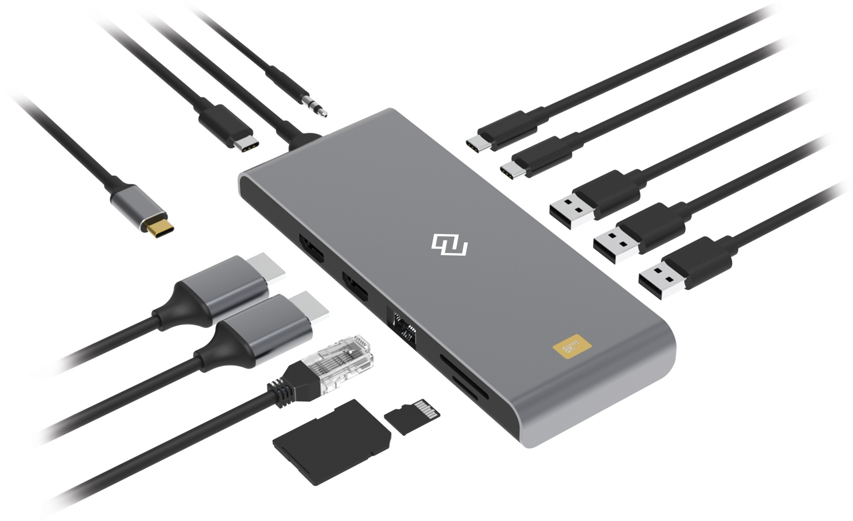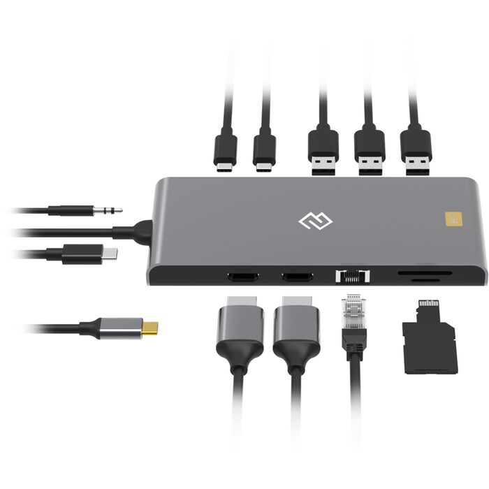 Type-C док-станция DIGMA, 12 портов - 1*HDMI (8K@30Hz, 2K/FULL HD@144Hz), 1*HDMI (4K@60Hz), 2*USB-C 3.2 Gen2 (10Gbps), 2*USB-A 3.2 Gen1 (5Gbps), 1*USB-A 3.2 Gen2 (10Gbps), 1*RJ45 (2.5Gbps), 1*SD 4.0 Card (218M/s), 1*TF 4.0 Card (218M/s), 1*3.5mm Audio Jack, 1x USB-C PD (up to 100W)