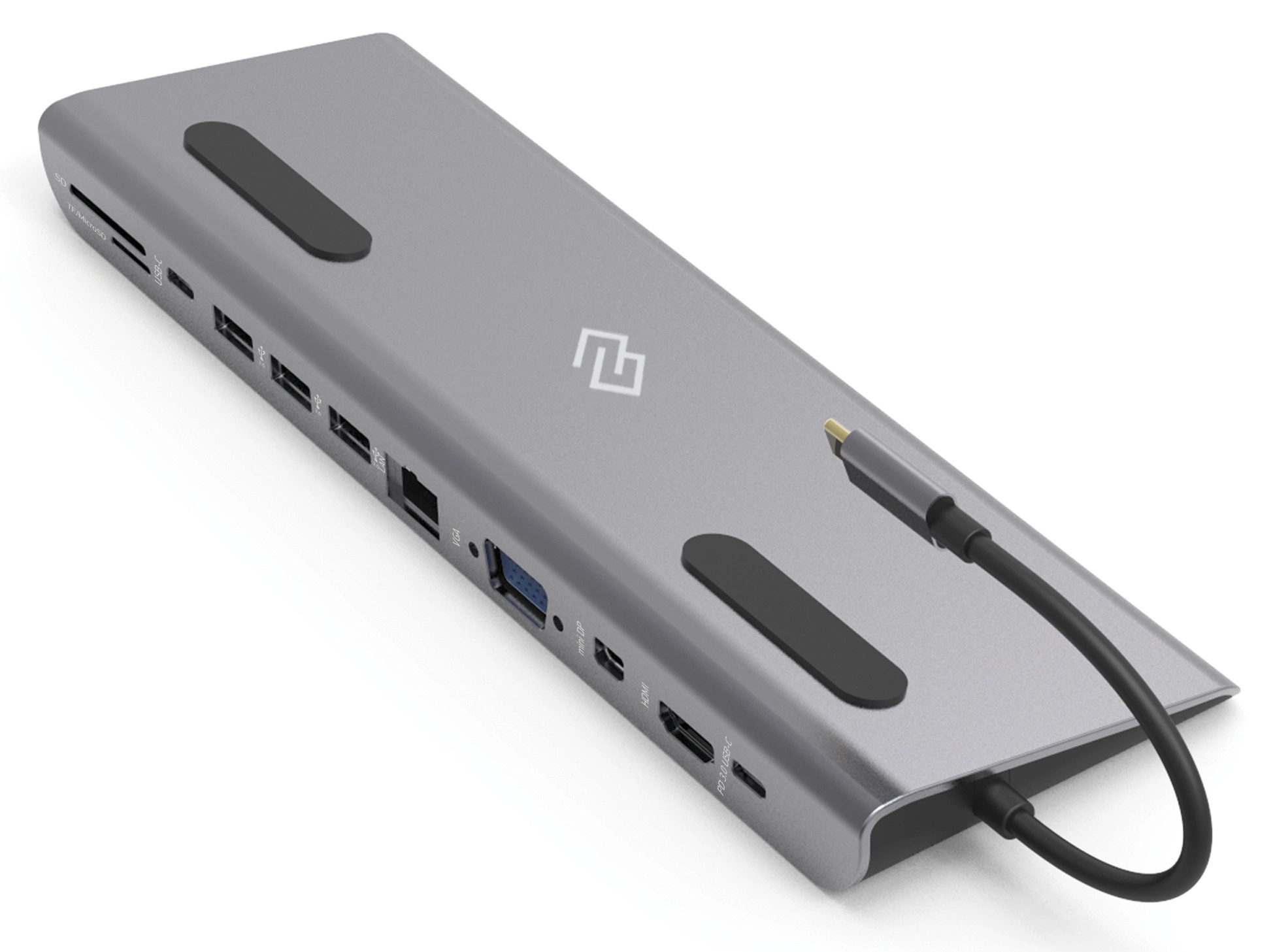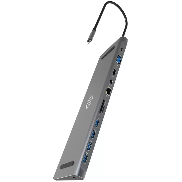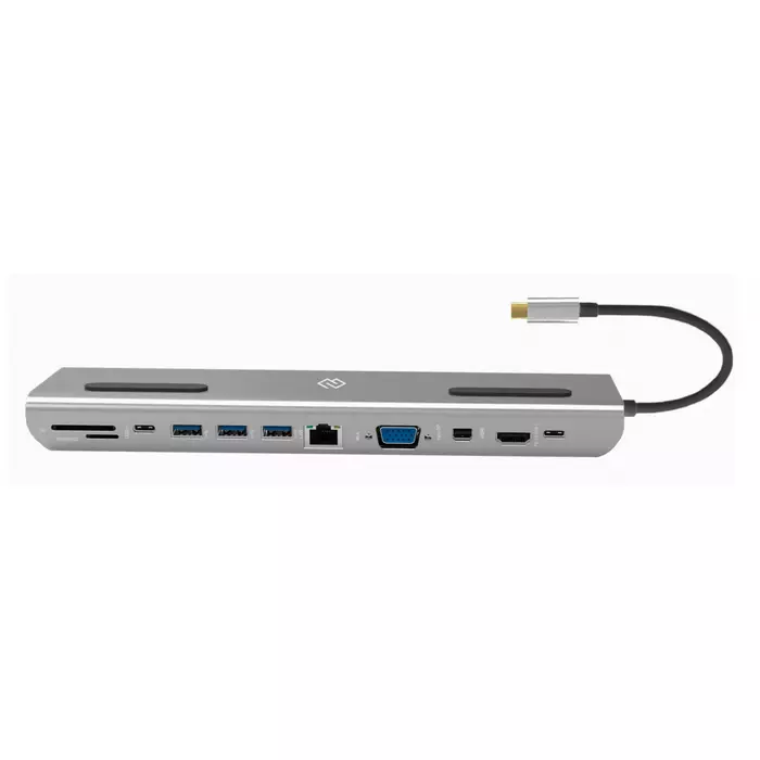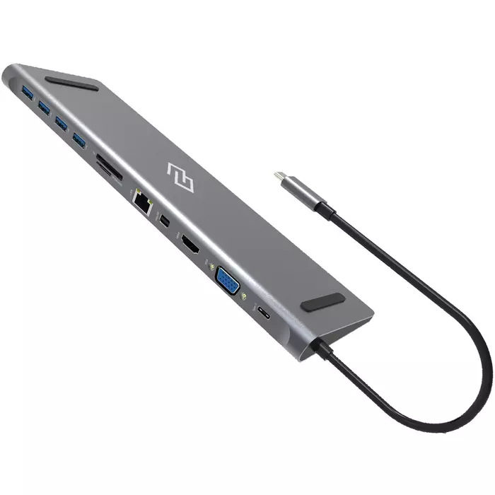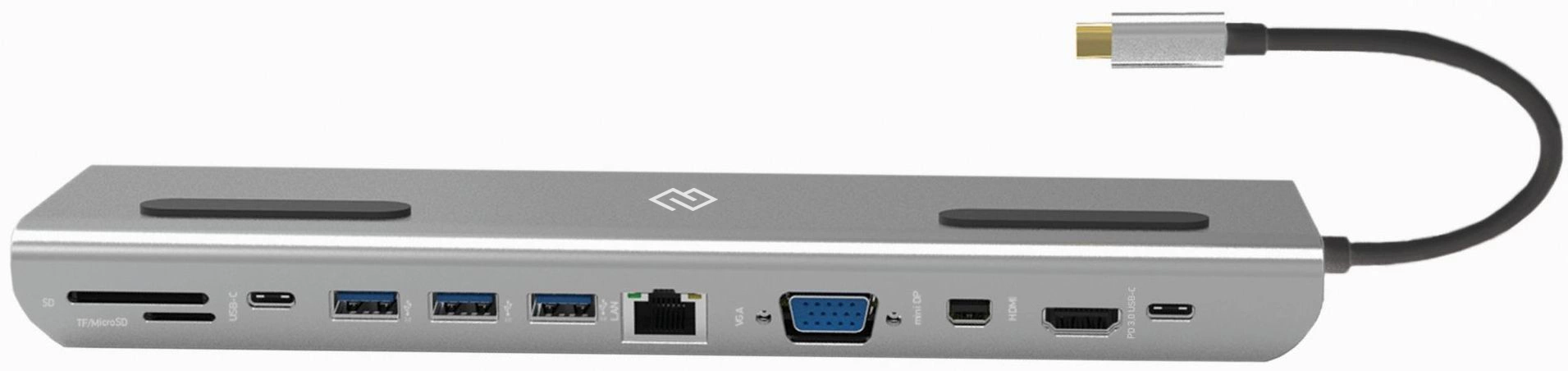Type-C док-станция DIGMA, 12 портов (HDMI (4K@30HZ, FULL HD@60Hz) , VGA, RJ45, Mini DisplayPort (4K@30HZ, FULL HD@60Hz), 3xUSB 3.0, Audio 3.5mm, 2xUSB-C (2.0 и PD 3.0 60W), MicroSD, SD)