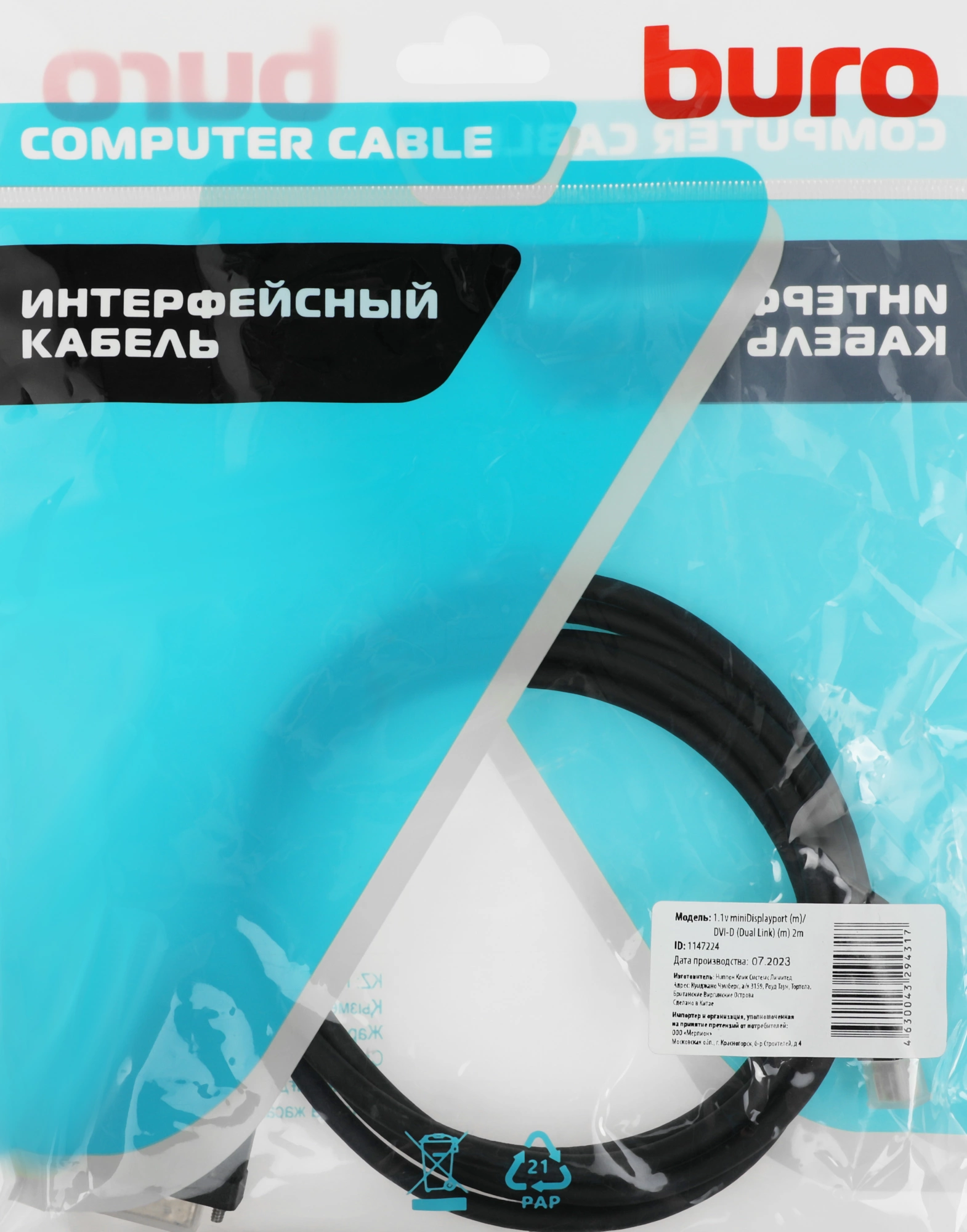 Описание BURO 1.1v miniDisplayport (m)/DVI-D (Dual Link) (m) 2м. [BHP MDPP-DVI-2]