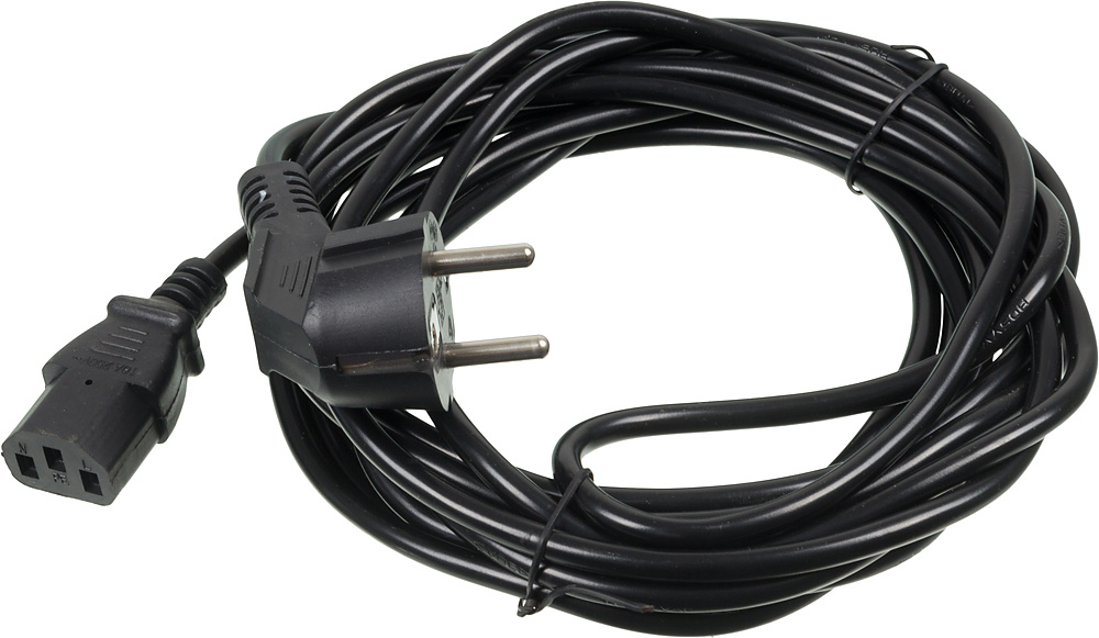 Кабель для подключения блока питания компьютера, монитора или источника бесперебойного питания к электросети. Длина кабеля 5 метров.материал проводника - медь, сечение проводника 0.5мм2, ток 8А