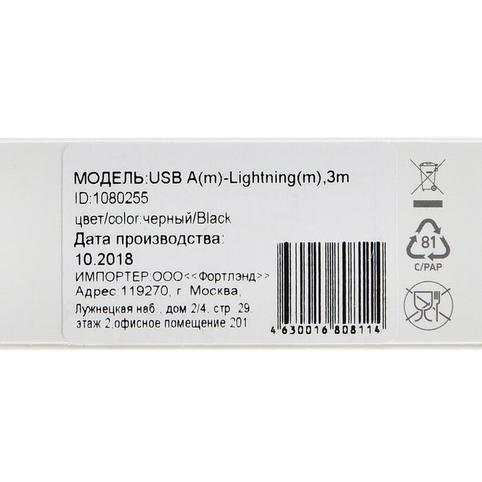 Описание Digma USB (m)-Lightning (m) 3м [LIGHT-3M-BRAIDED-BLK]