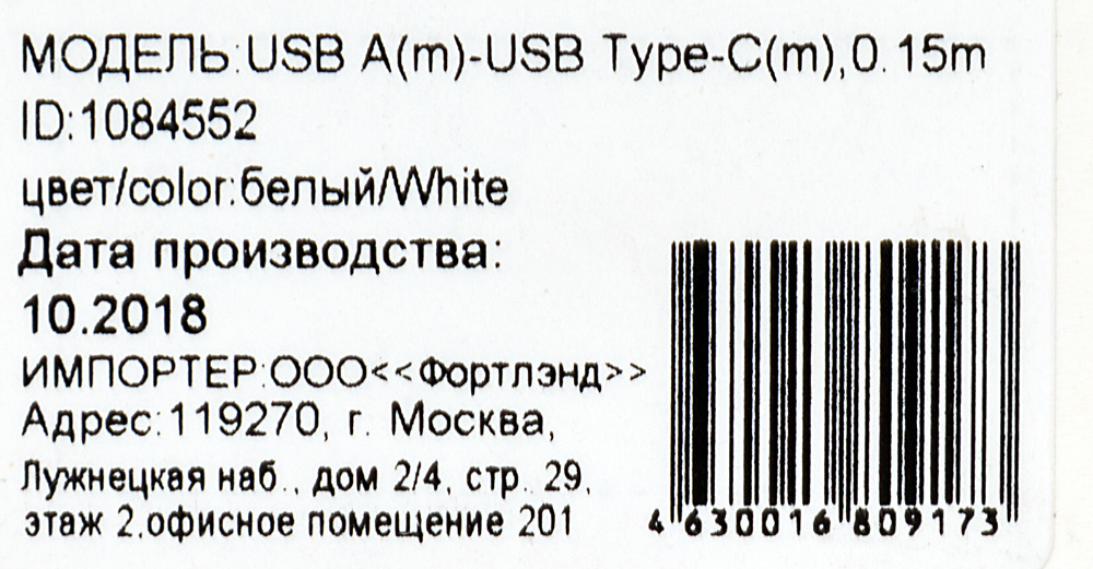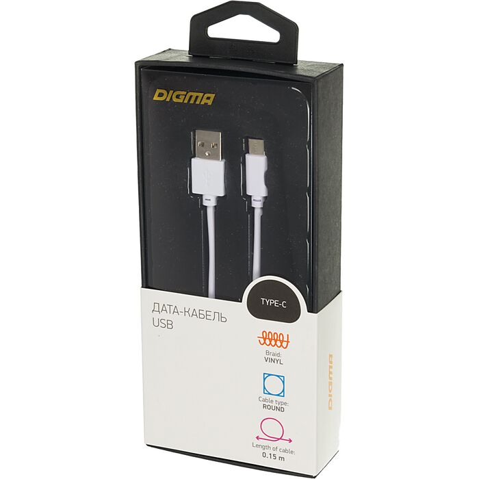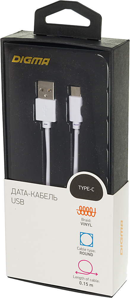 Описание Digma USB (m)-USB Type-C (m) 0.15м [TYPE-C-0.15M-WH]