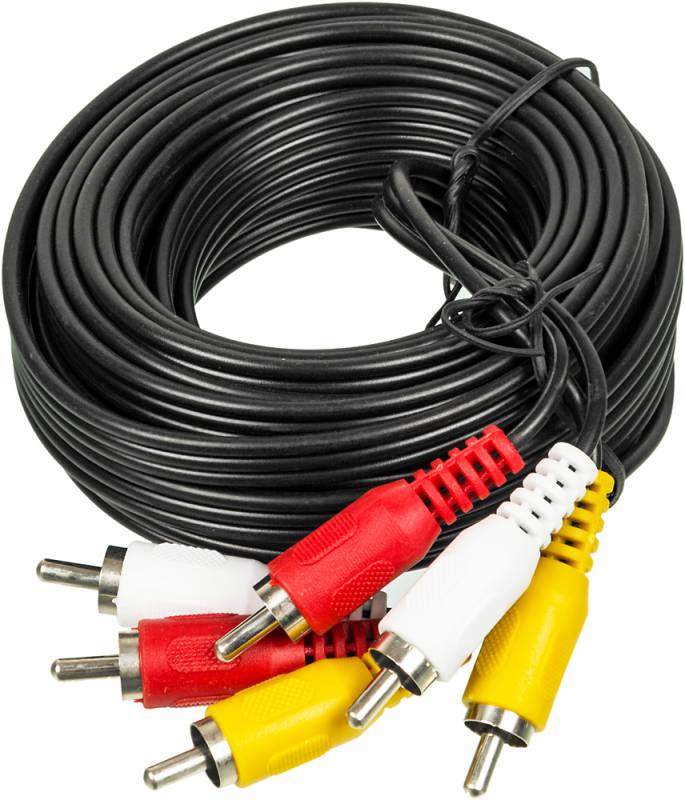 Тройной кабель RCA для передачи аудио и видеосигнала от DVD плеера или видеомагнитофона к телевизору или проектору.