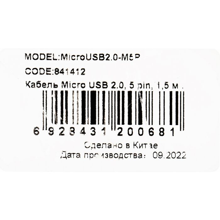Кабель USB для передачи данных между персональными компьютерами и смартфонами, планшетами, MP3-плеерами и прочими устройствами с портом micro USB.