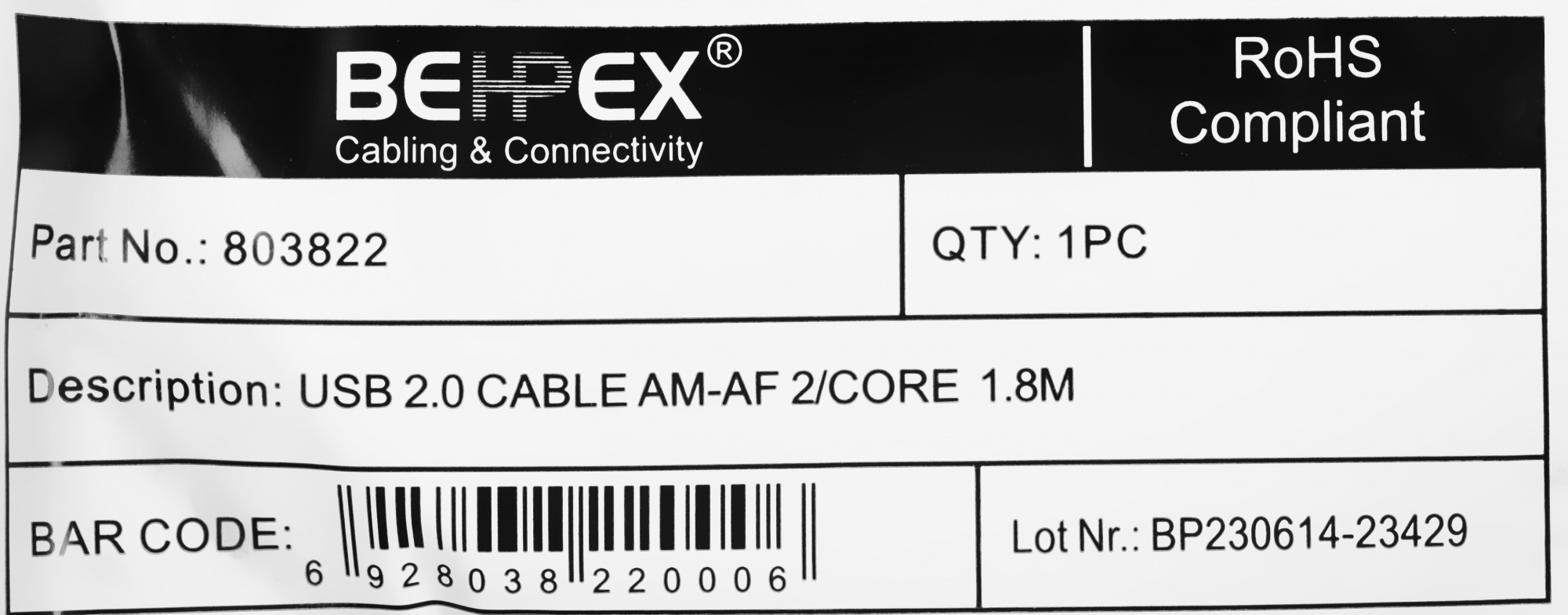 Кабель-удлинитель позволяющий повысить метраж проводов у клавиатуры, мыши, принтера, сканера или любого другого устройства использующего для подключения к персональному компьютеру порт USB 2.0. Длина 1,8 метра.