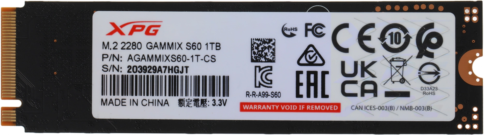 Описание AData 1TB Gammix S60 XPG [AGAMMIXS60-1T-CS]