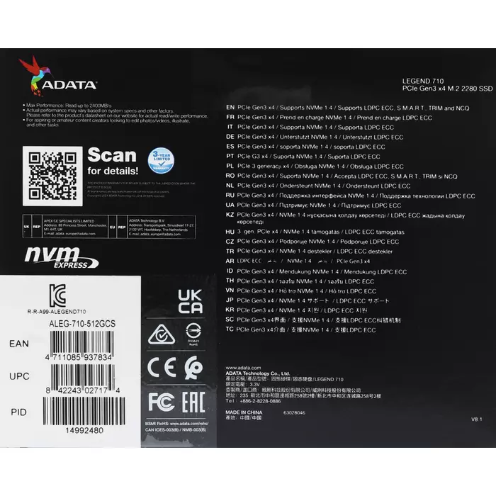 Описание AData 512Gb Legend 710 [ALEG-710-512GCS]
