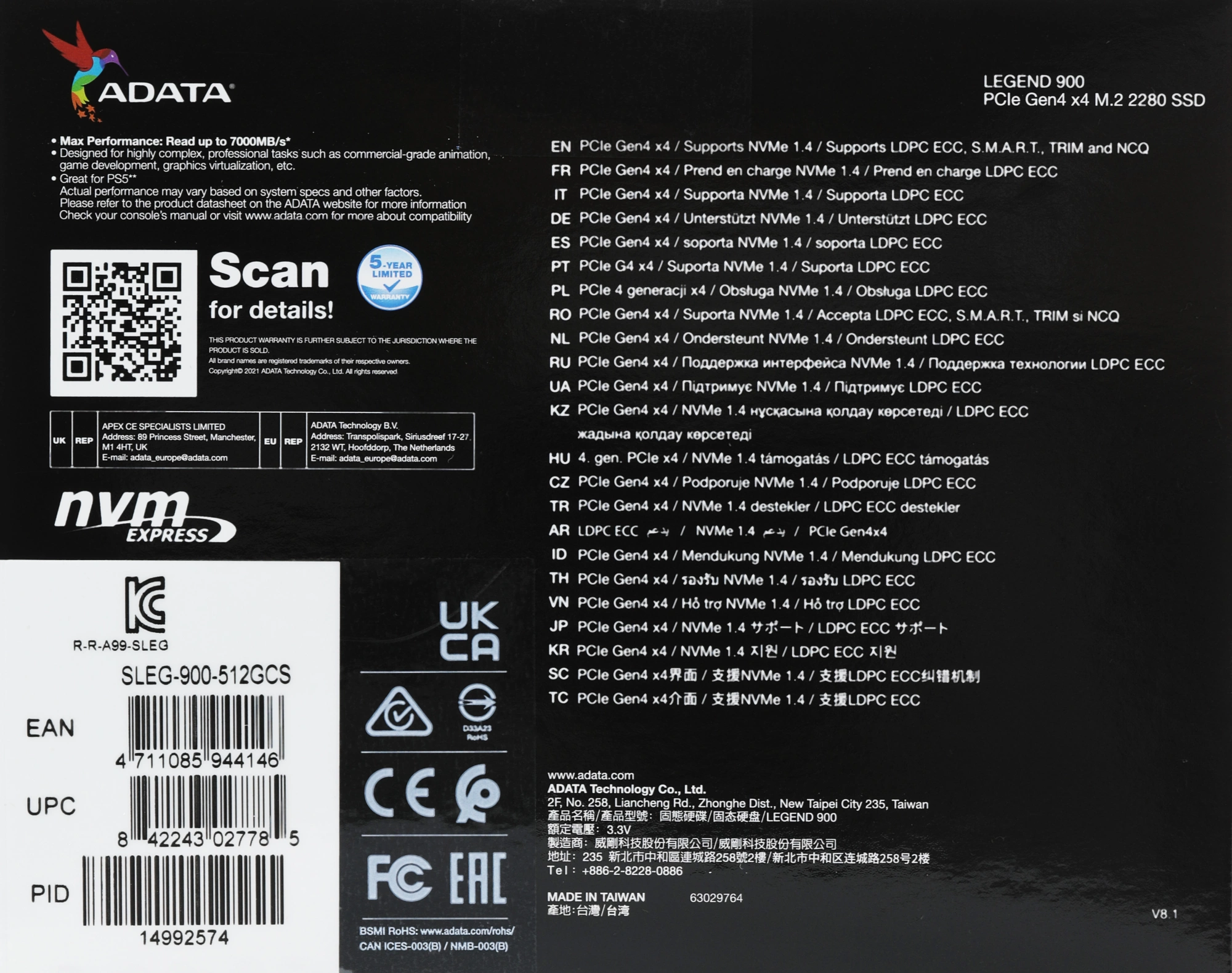 Наличие товара AData 512Gb Legend 900 [SLEG-900-512GCS]