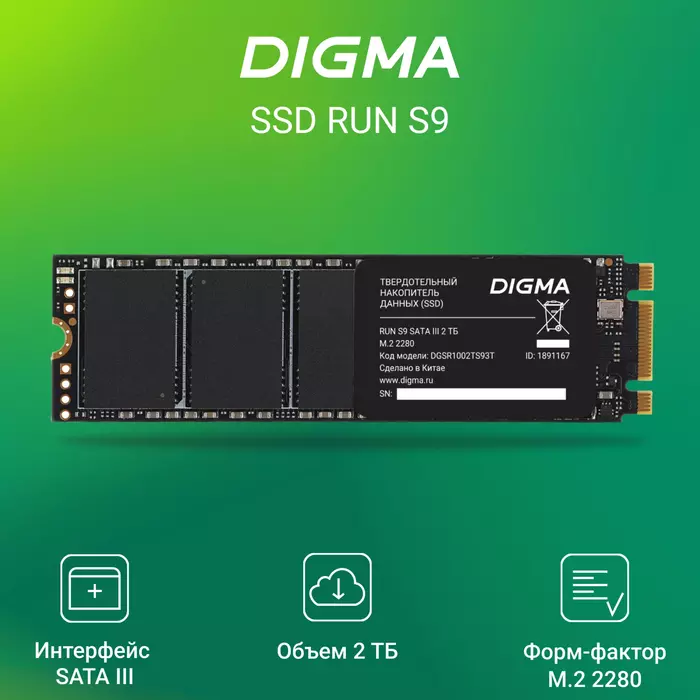 Наличие товара Digma 2Tb Run S9 [DGSR1002TS93T]