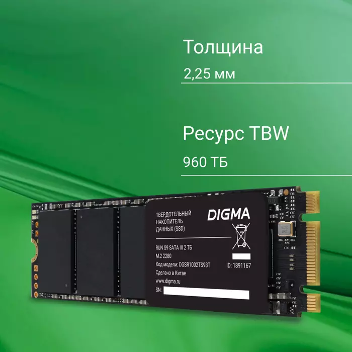 SSD-накопитель Digma 2Tb Run S9 SATA-III M.2 2280 [DGSR1002TS93T]