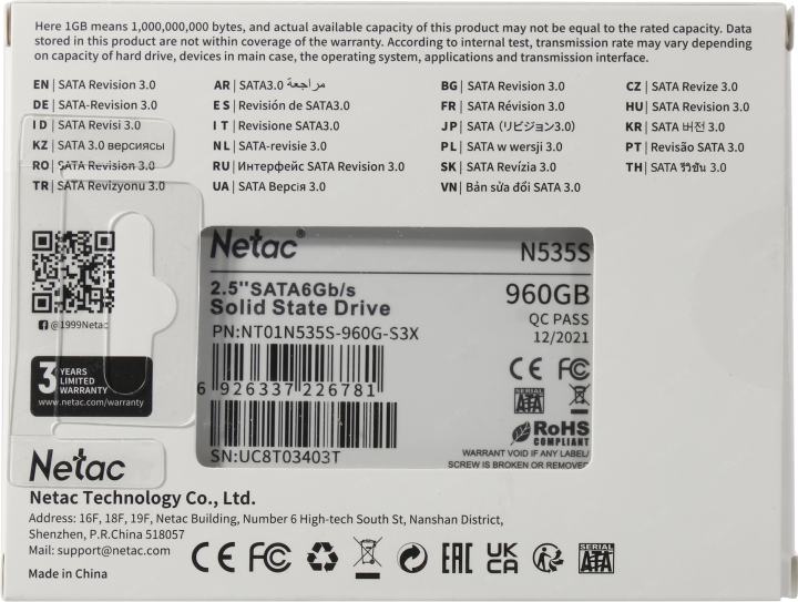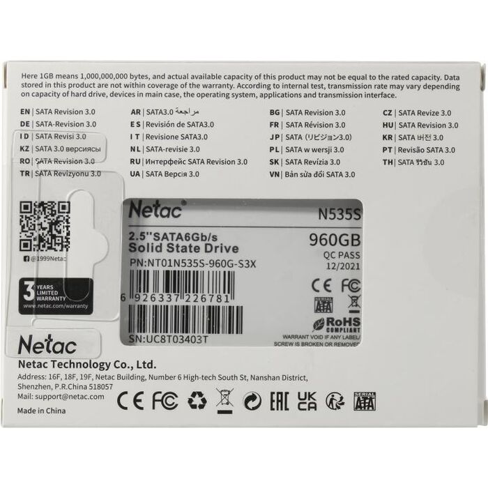 Описание Netac 960 Gb N535S [NT01N535S-960G-S3X]