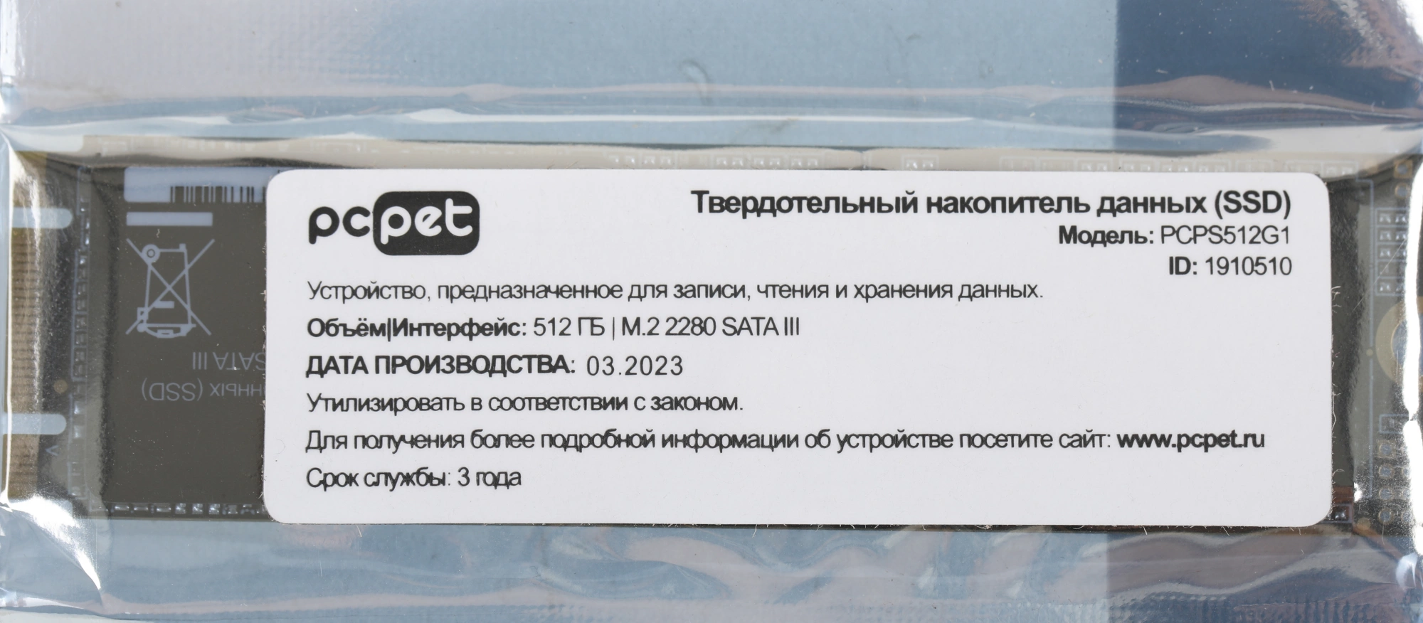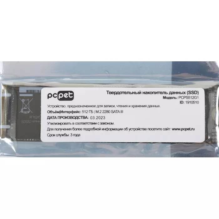 SSD-накопитель PC Pet 512Gb SATA-III M.2 2280 OEM [PCPS512G1]