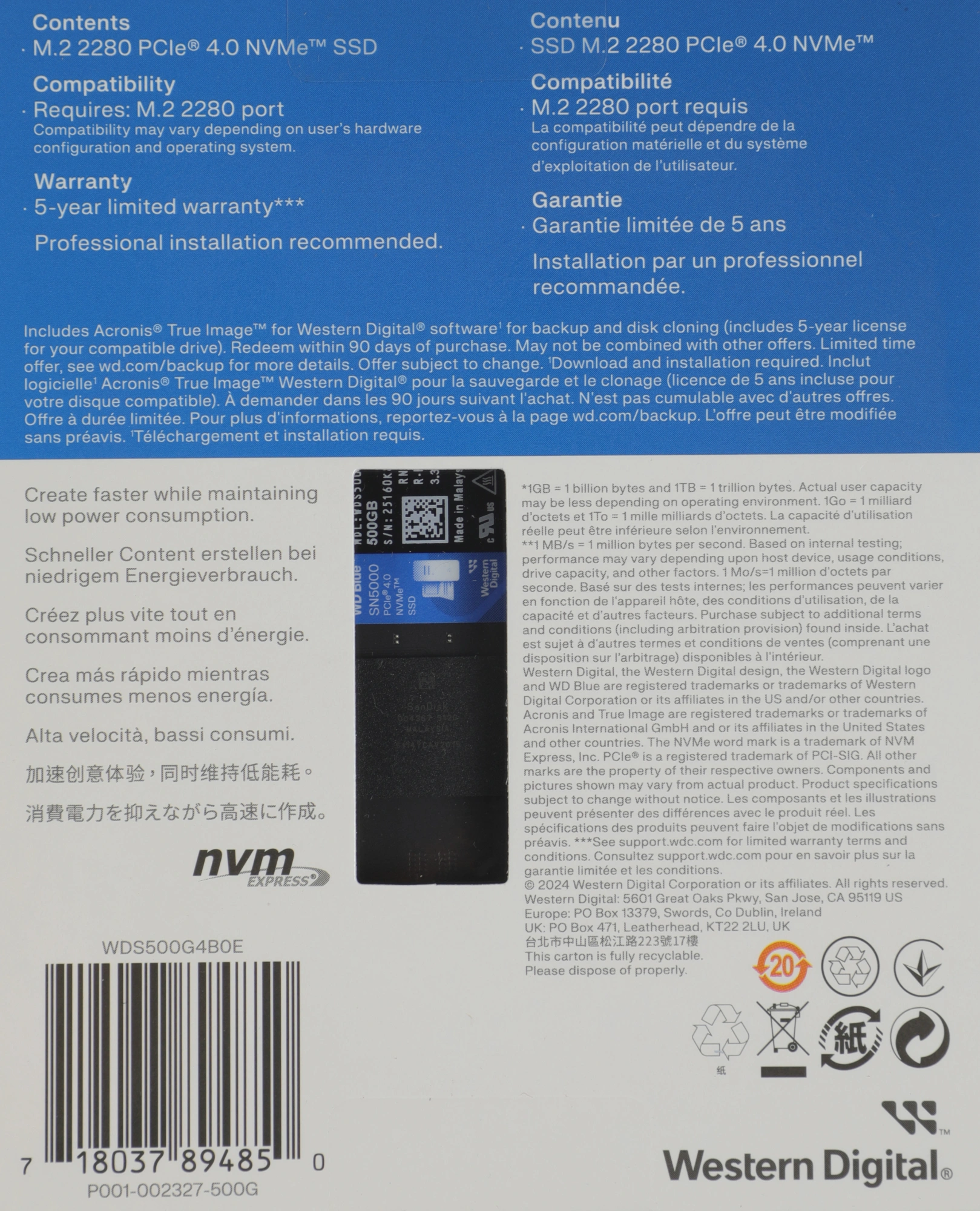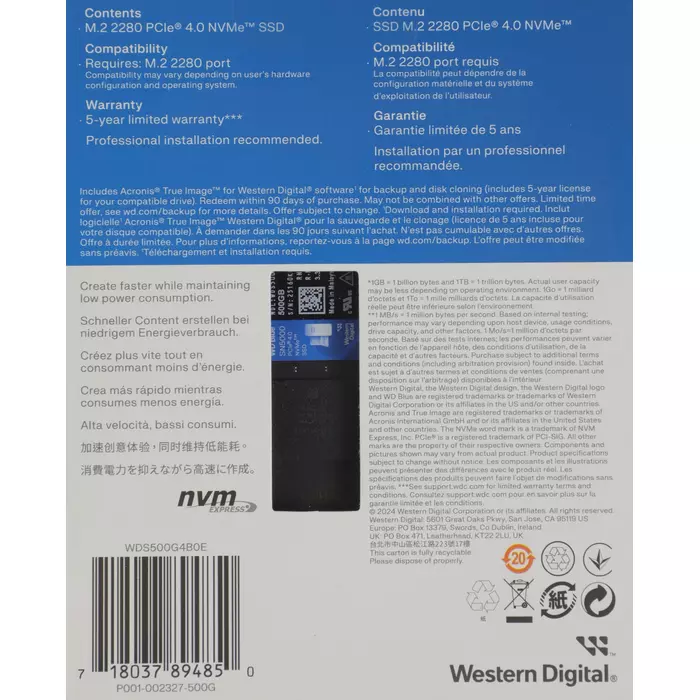 Описание WD 500GB SN5000 Blue [WDS500G4B0E]