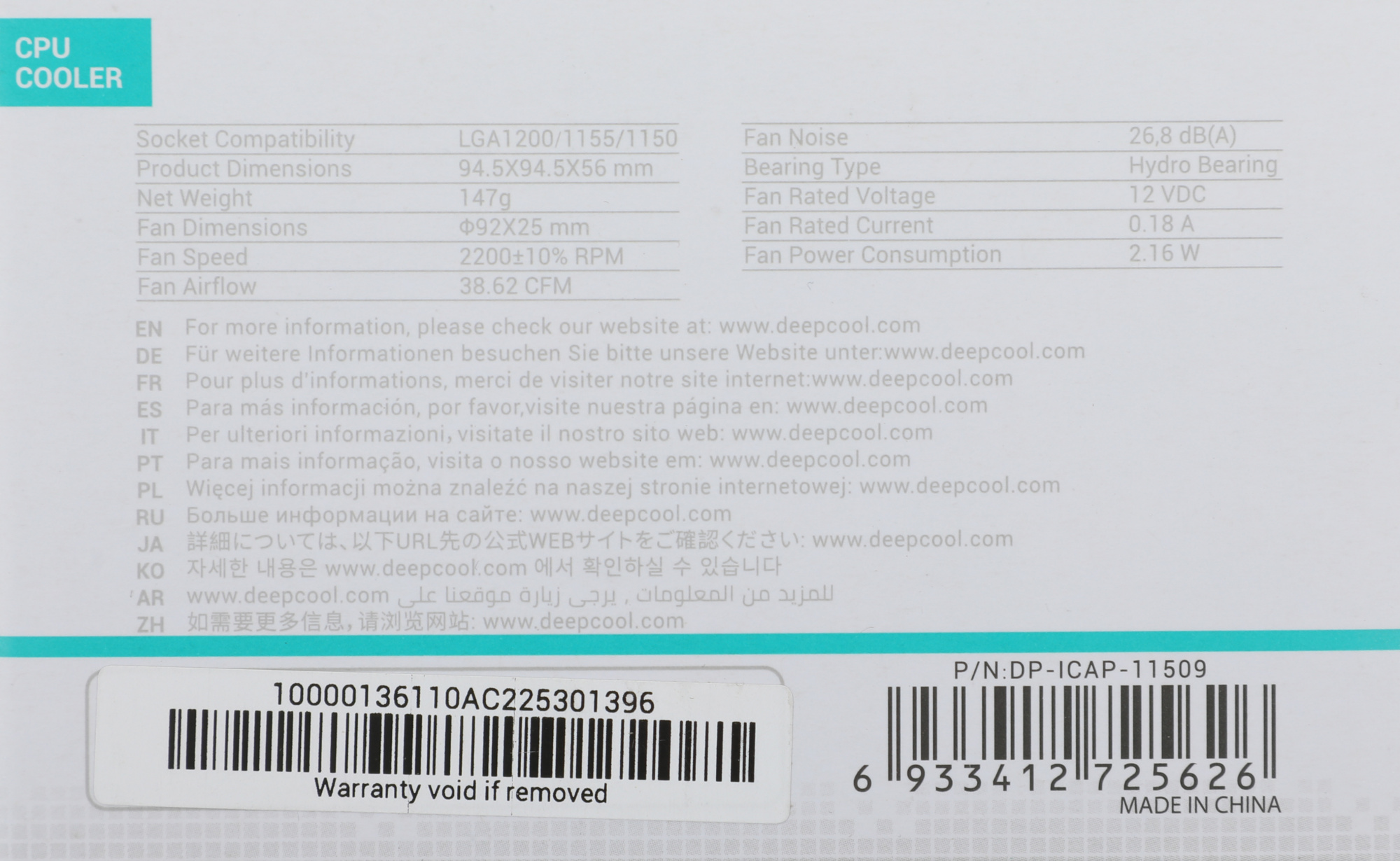 Описание Deepcool CK-11509 [DP-ICAP-11509]