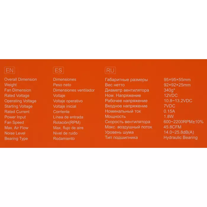 | Потребляемая мощность вентилятора | 1.8 Вт |