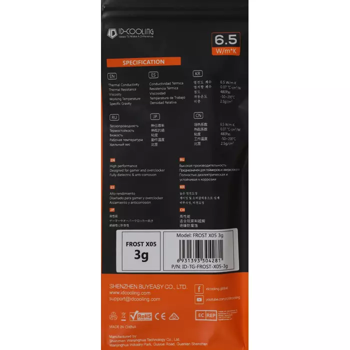 Термопаста ID-Cooling FROST X05 3G 6.5Вт/(м-К) шприц 3гр
