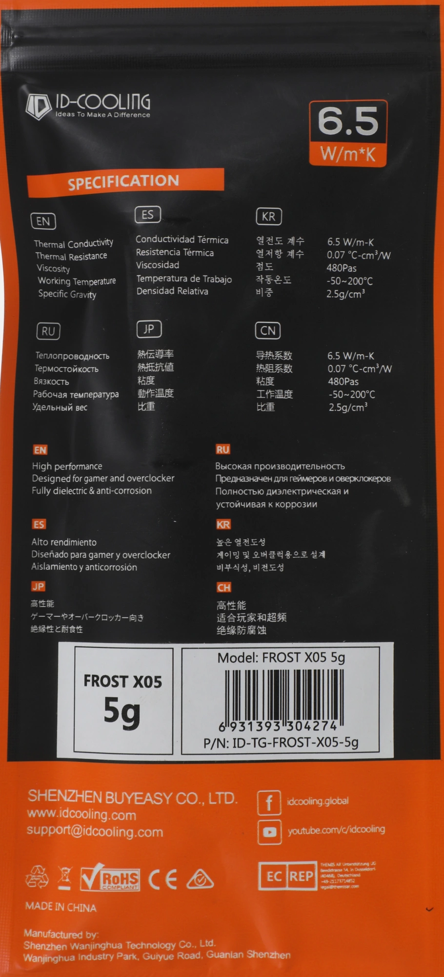 Термопаста ID-Cooling FROST X05 5G 6.5Вт/(м-К) шприц 5гр.
