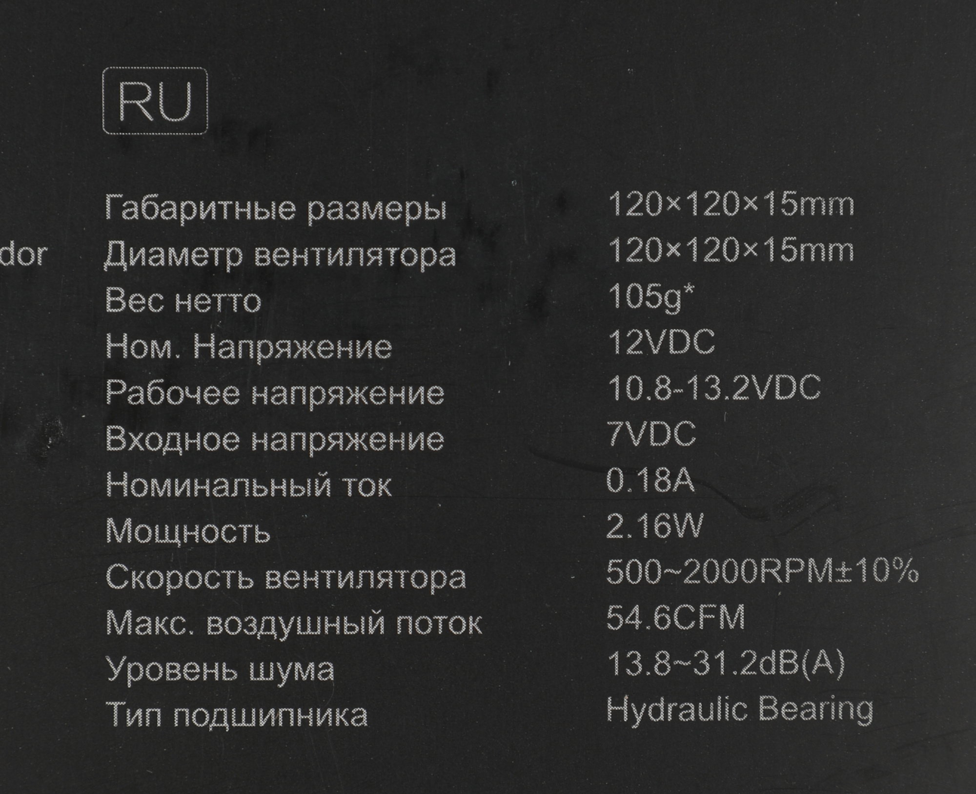 | Потребляемая мощность вентилятора | 2.16 Вт |