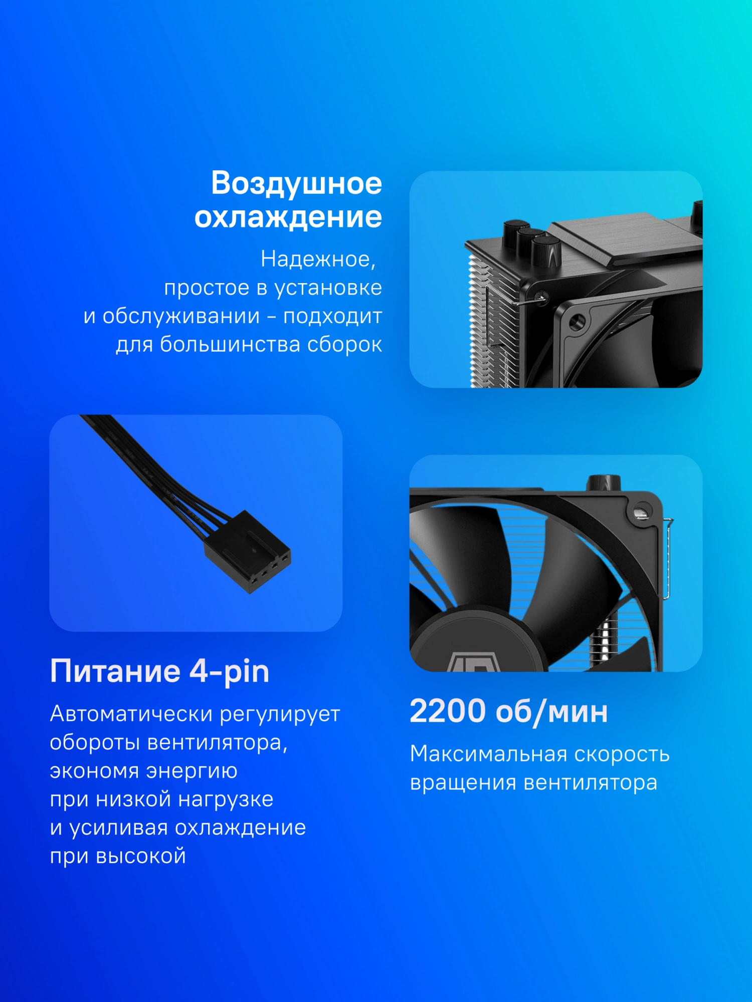 | Макс. скорость вращения вентилятора | 2200 об/мин |
