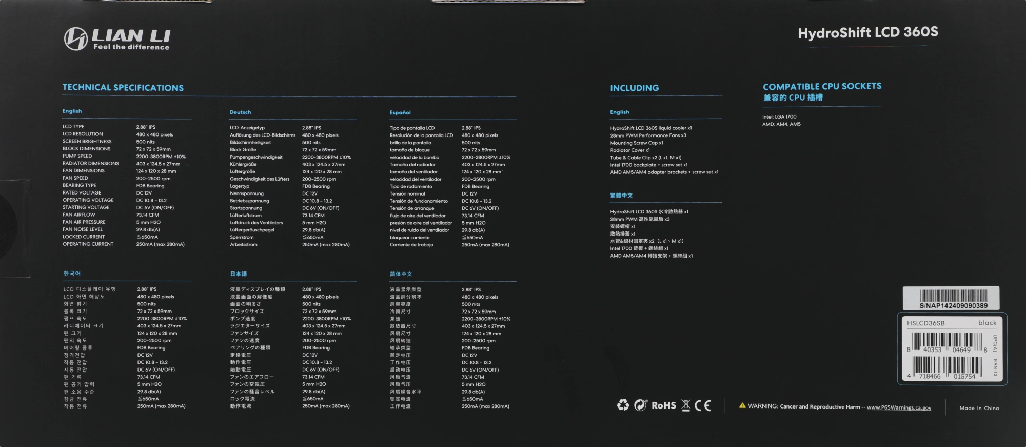 Наличие товара Lian-Li LCD 360S [G89.GHSLCD36SB.R0]