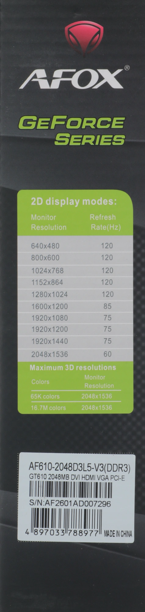Описание Afox GeForce GT 610 2Gb [AF610-2048D3L5-V3]