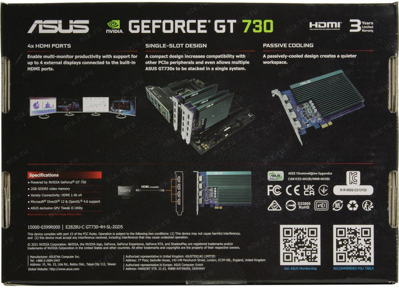 Особенности Asus GeForce GT 730 2Gb