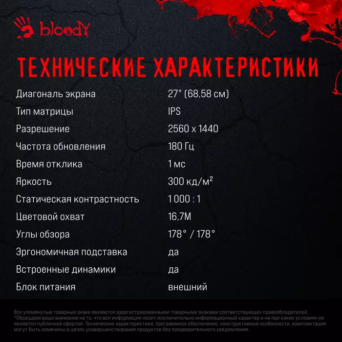 | Комплектация | кабель DP, блок питания, инструкция пользователя |