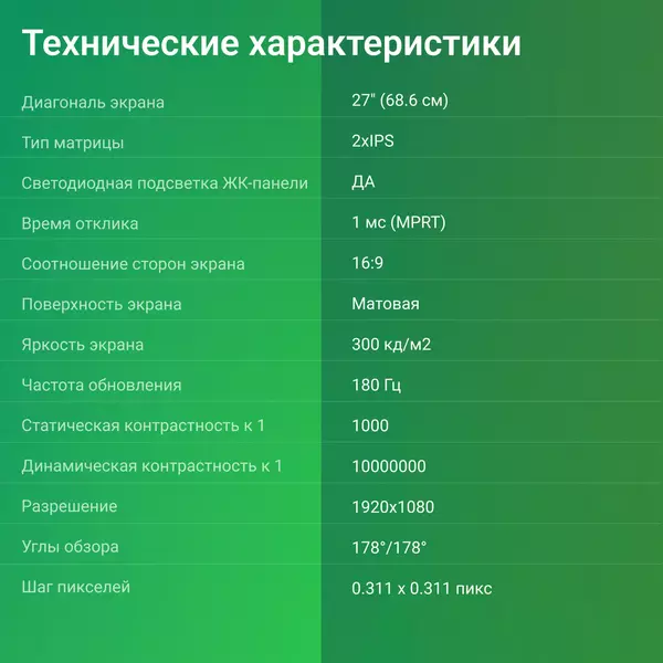 | Комплектация | кабель DP, блок питания, инструкция, гарантийный талон |