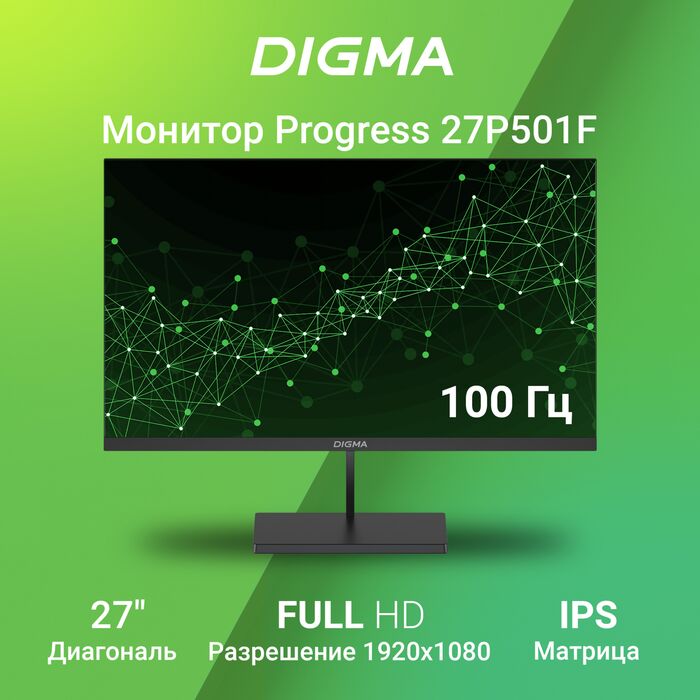 ЖК-монитор Digma Progress 27P501F 27" IPS LED 5ms 16:9 HDMI M/M матовая 300cd 178гр/178гр 1920x1080 100Hz G-Sync FreeSync VGA DP FHD 4.3кг черный [DM27SB01]