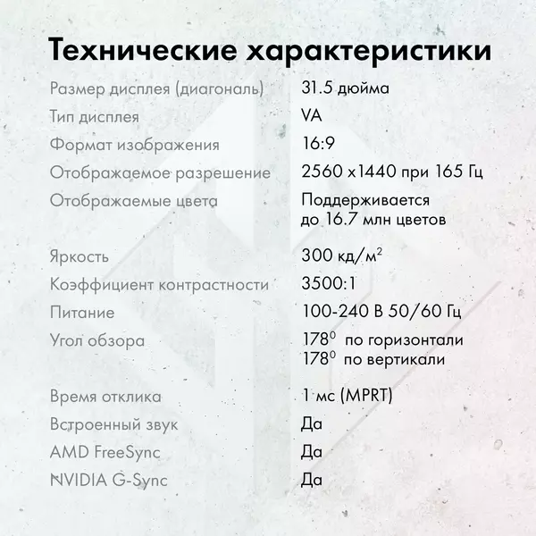 | Стандарт разрешения экрана | Ultra HD 2K (1440p) |