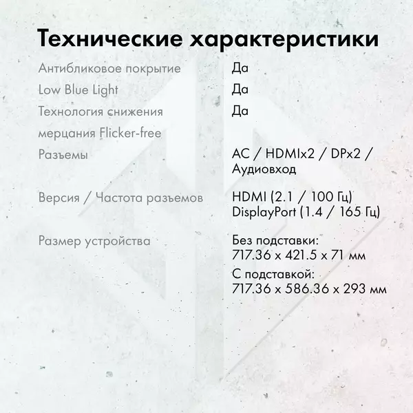 | Размеры с подставкой | 717.4x504.9x249.5мм |